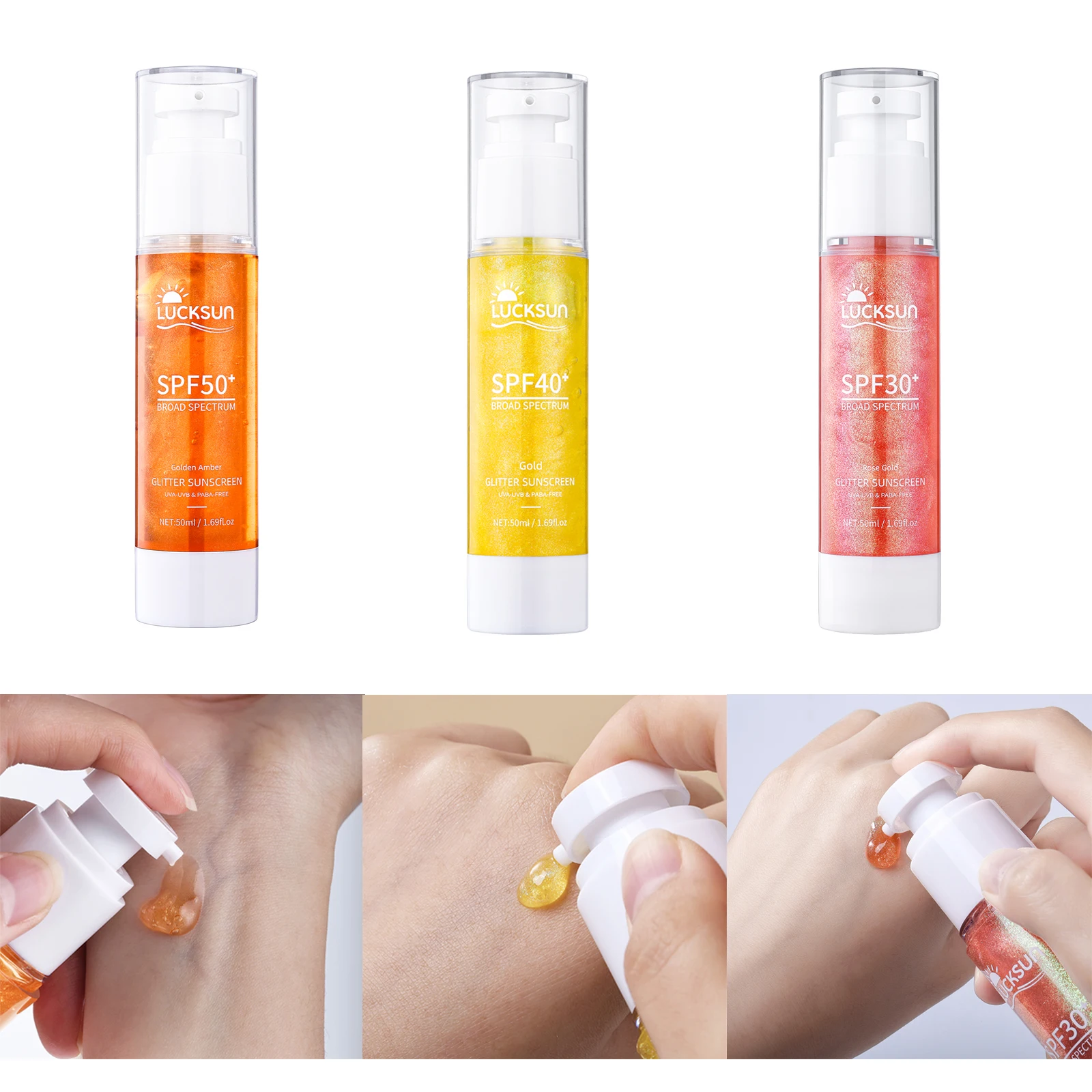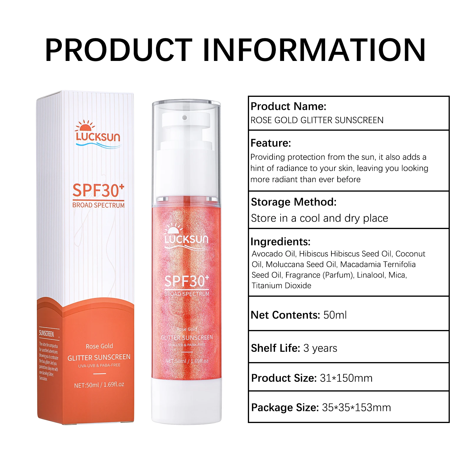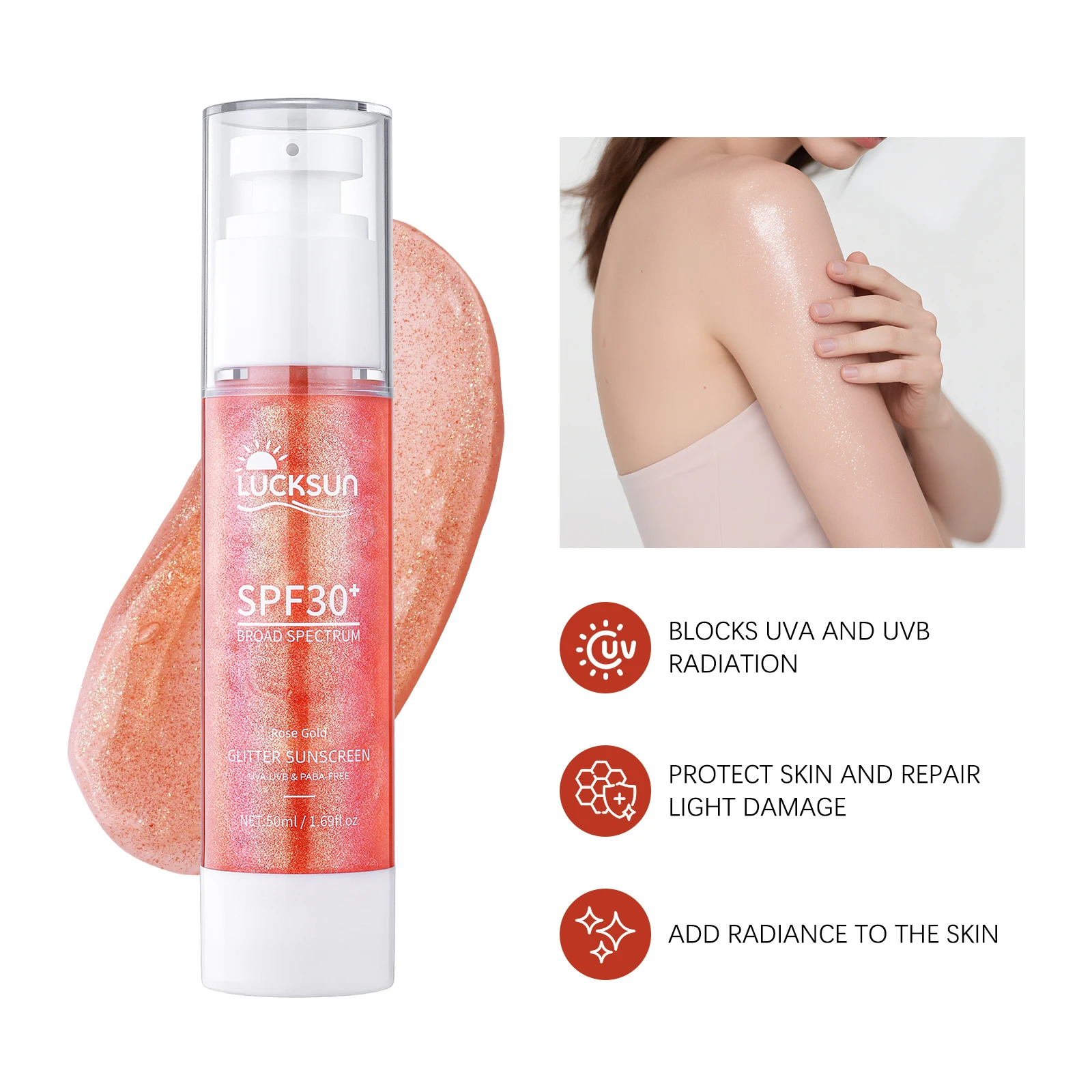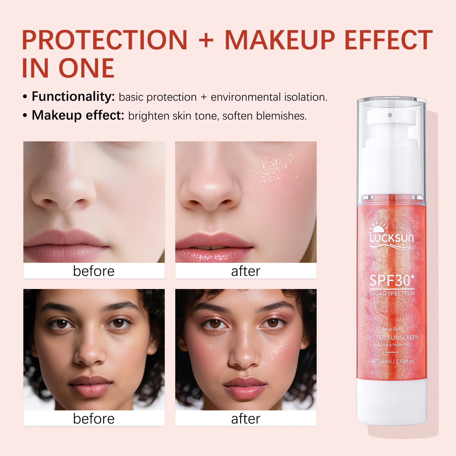 SPF50+ Glitter Sunscreen 50ml UVA/UVB Protection + Skin Brightening Shimmer Makeup Effect for All Skin Types Body Glow Gel