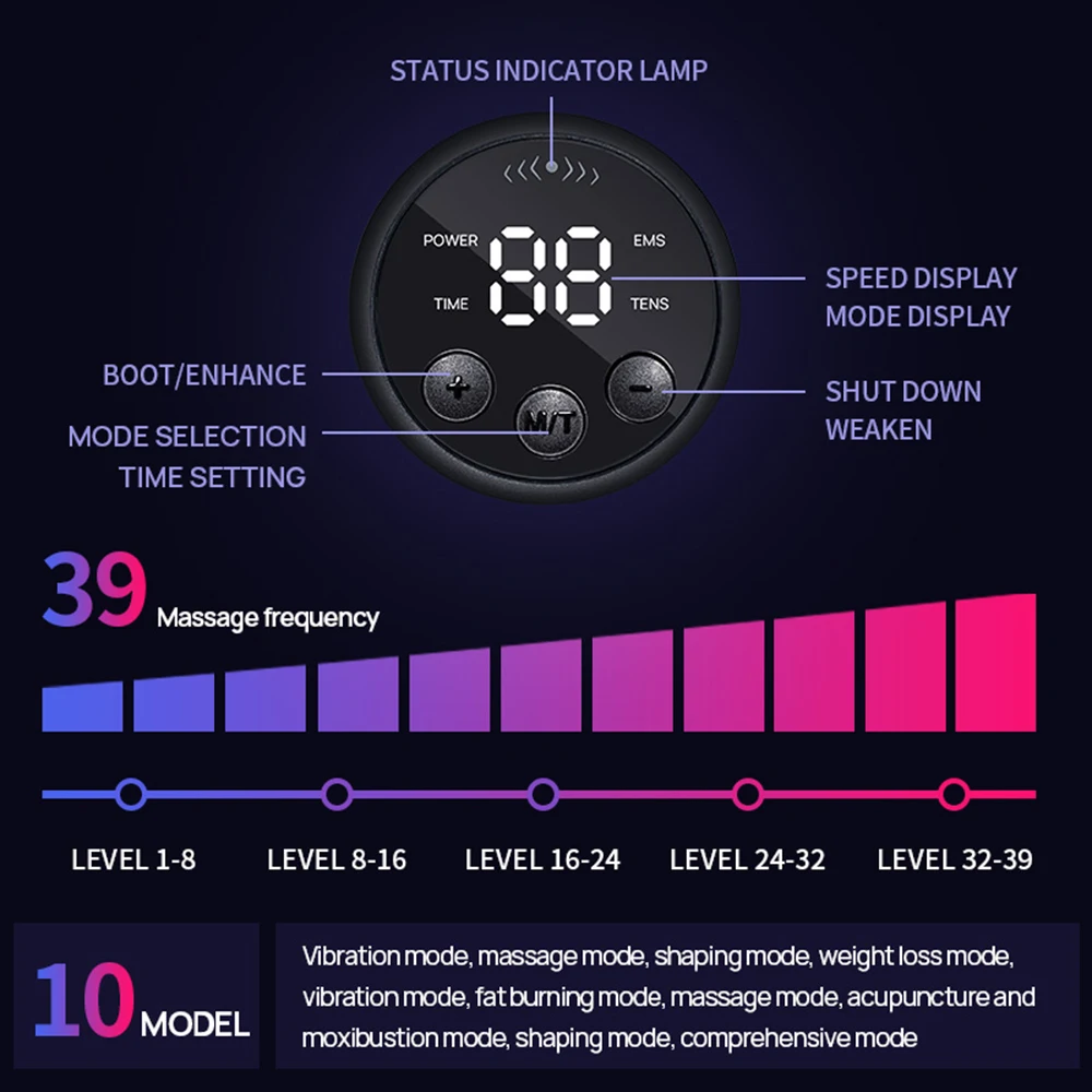 (4)The abdominal muscle belt has 10 types of modes and 39levels of strength.From warm-up to high-intensity exercise and finally to relaxation, perfect for your various needs.