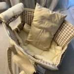 сумка просто огонь , давно искала удобную , она такая мягкая и удобная и куча карманов, жаль верхняя сетка не отстегивается полностью, мой питомец 5,5 идеально, берите и подушку, я зря не взяла