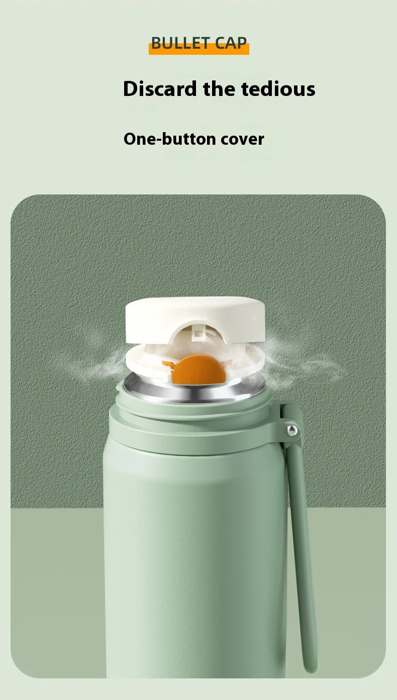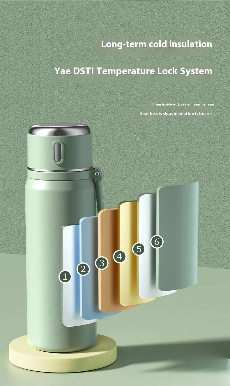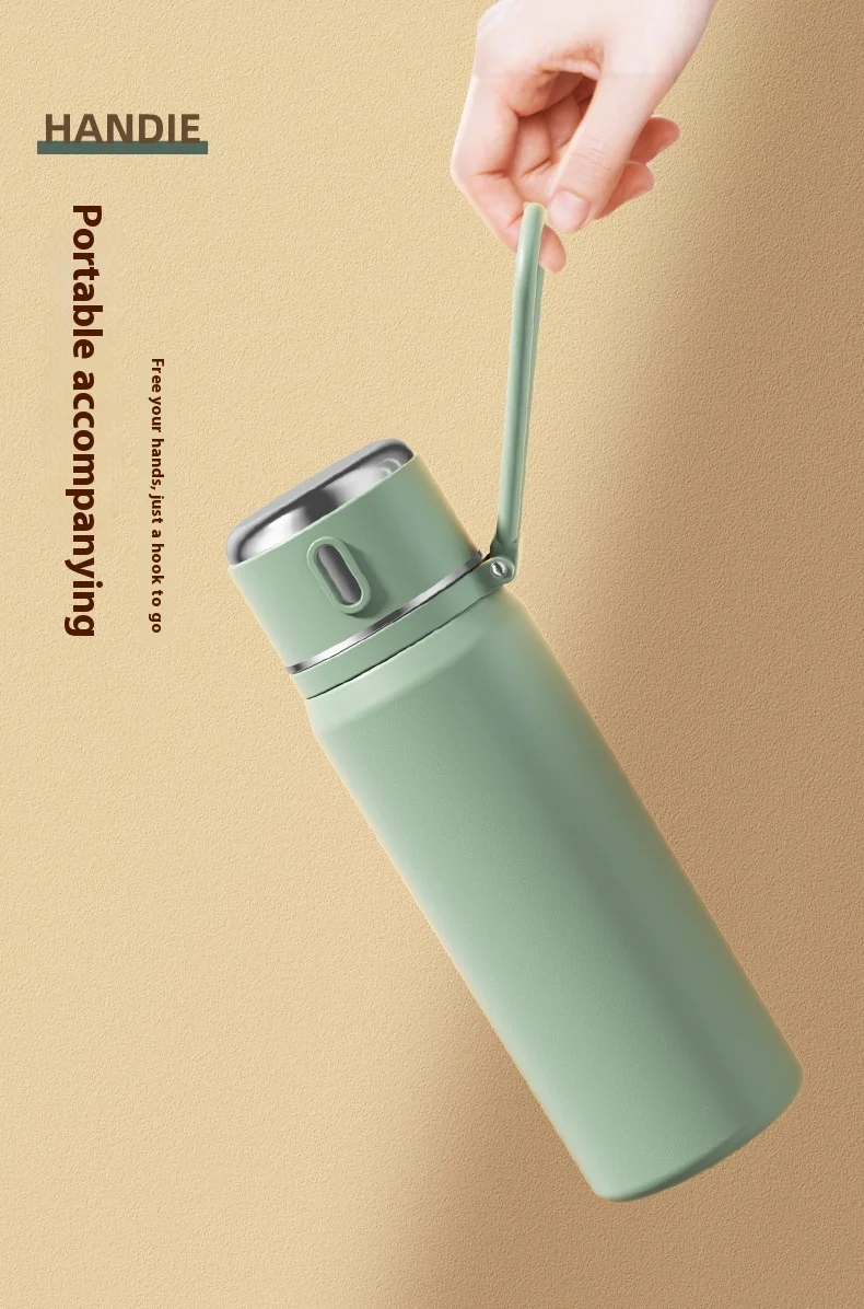 450/550ml 316 Stainless Steel Thermos Bottle Smart Temperature Display One Cup Two Drinks with Filter Screen Portable Handle