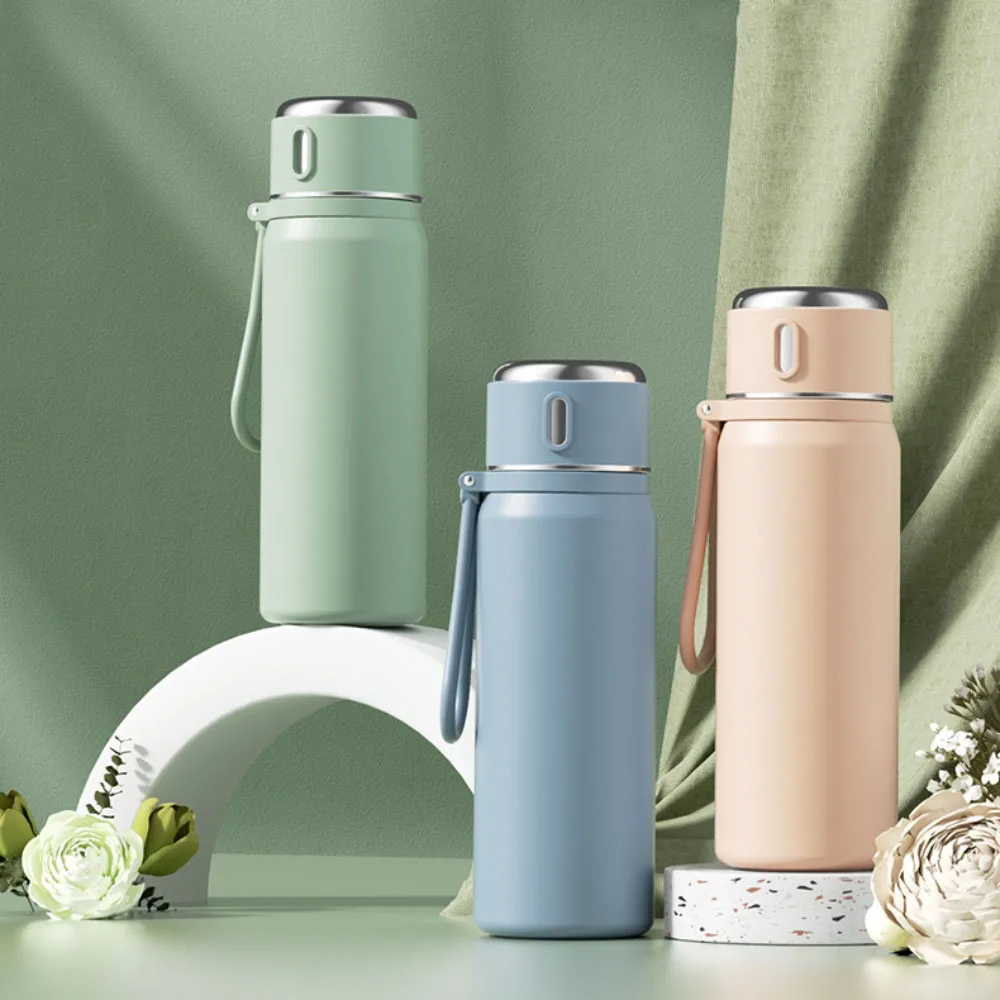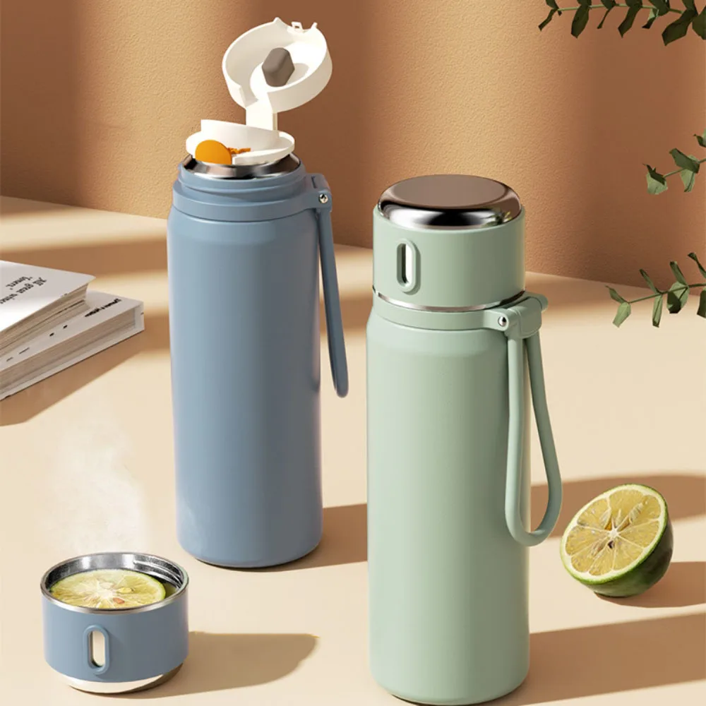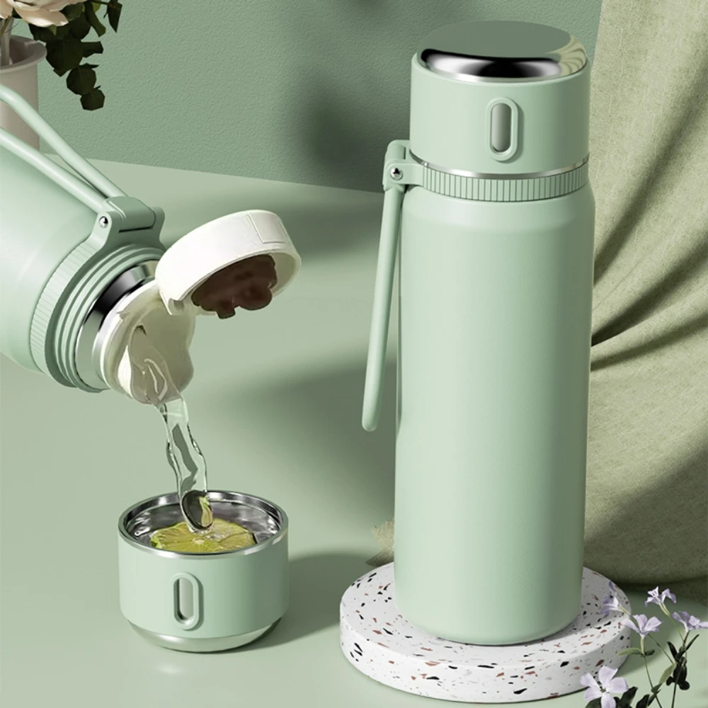 450/550ml 316 Stainless Steel Thermos Bottle Smart Temperature Display One Cup Two Drinks with Filter Screen Portable Handle