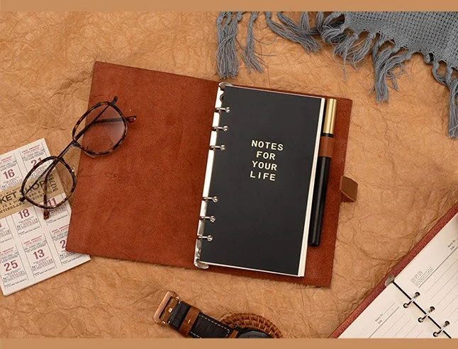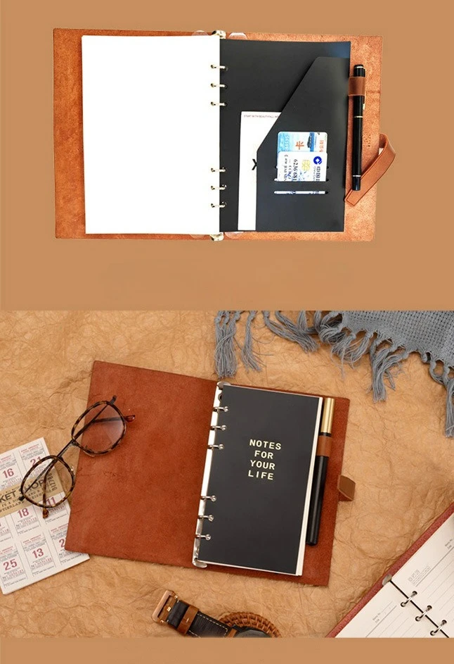 A6 160pages Binder Journal PU Leather Refillable Loose Leaf Personal Planner Organizer Ruled Notebook Buckle Business Office