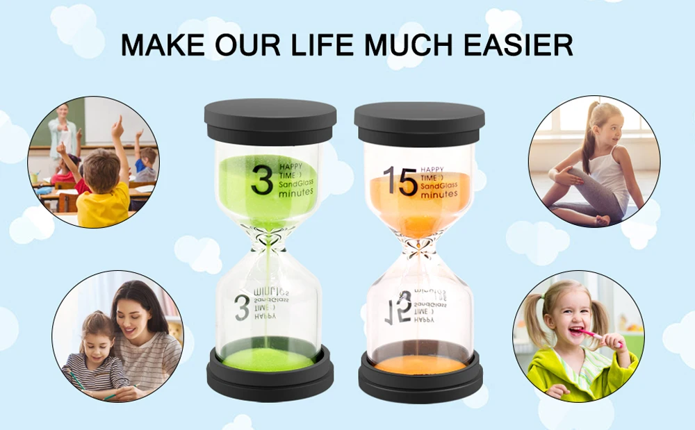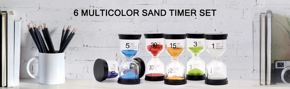 Sand Timer 6 Colors Hourglass 1/3/5/10/15/30 Minutes Sandglass Timer Sand Watch Clock for Kids Games Home Office Decoration