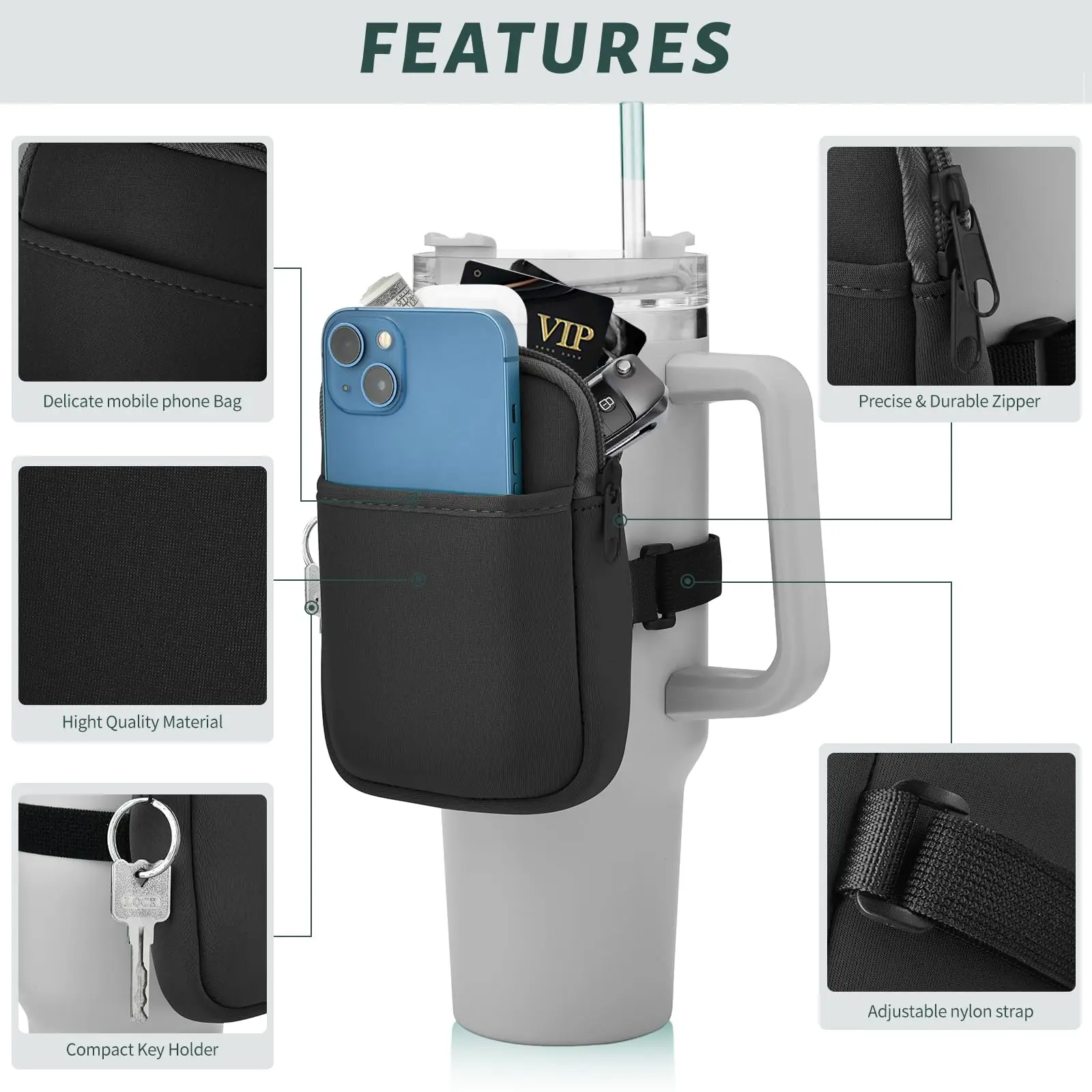 Water Bottle Pouch For Stanley Quencher Adventure 40oz & Stanley IceFlow 20oz 30oz,tumbler pouch with Pocket, for Cards, Keys, Wallet, Earphone,Compact, Versatile