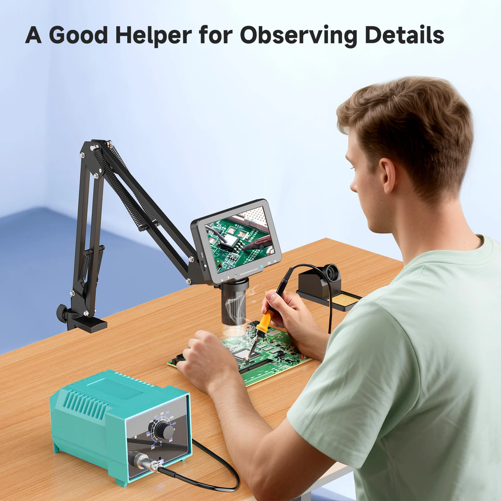 A very good camera at a reasonable price. Good image quality and sufficient magnification for soldering electronics. The only thing missing is an HDMI output to connect to a larger monitor, but it’s perfectly fine to work on the display.