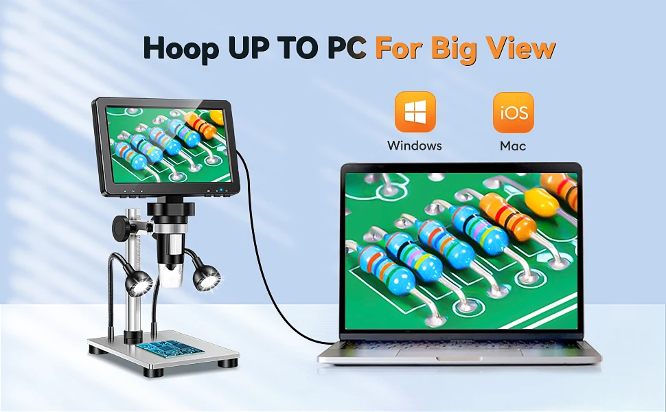 Hayve 7 inches LCD microscope screen with a 12MP high-definition camera which provides a broad field of view for easy viewing. The large screen allows you to quickly adjust the image and instantly view,Large screen with adjustable angle will give you a better visual experience.