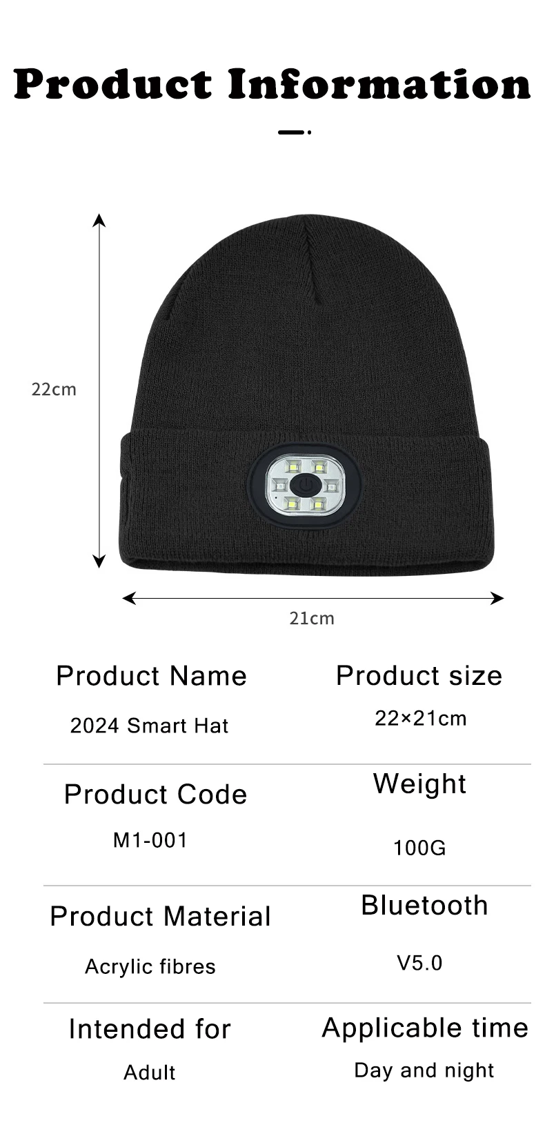 3. The knitted cap is USB charged and comes with an easy-to-use USB charging port. It takes 1-2 hours to fully charge.