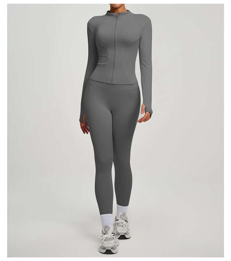 ABOUT:YOGA COAT SPORTS TOP JACKET FITNESS WOMEN’S TRACKSUIT TWO PIECE SET GYM CLOTHES