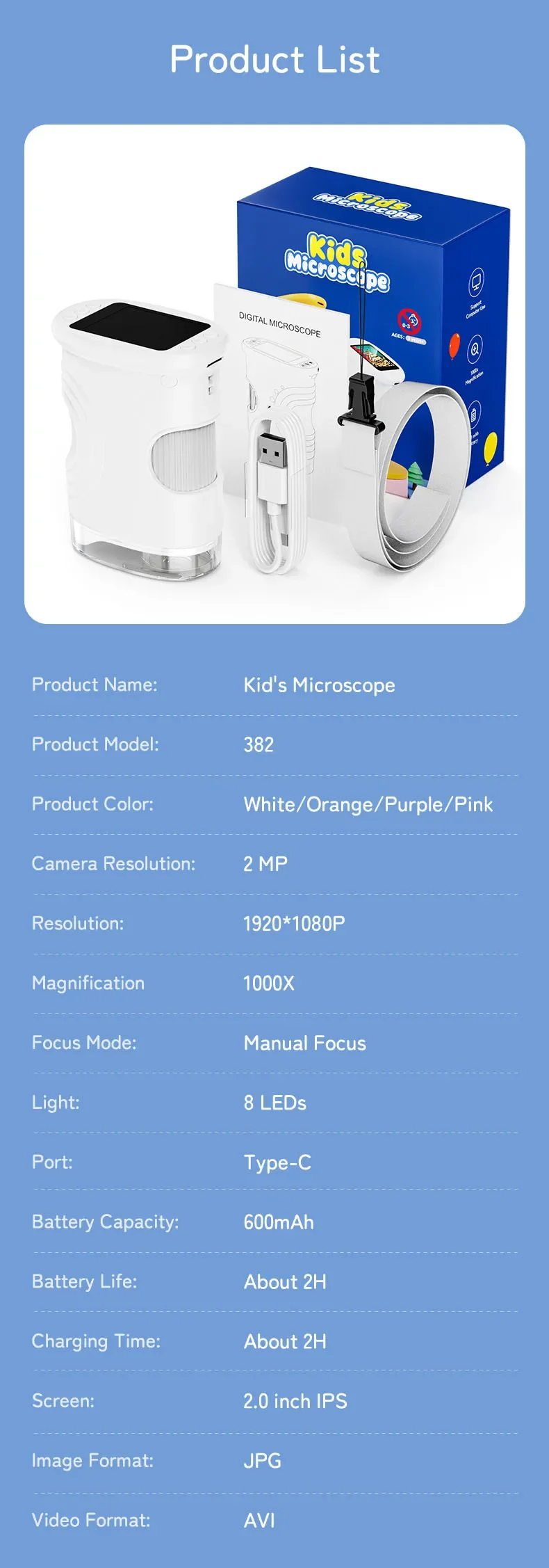 9 reviews for 1000X Handheld Microscope for Kids 2.0″ Screen Rechargeable Mini Pocket Digital Microscopes Portable Edu Gift Children Students