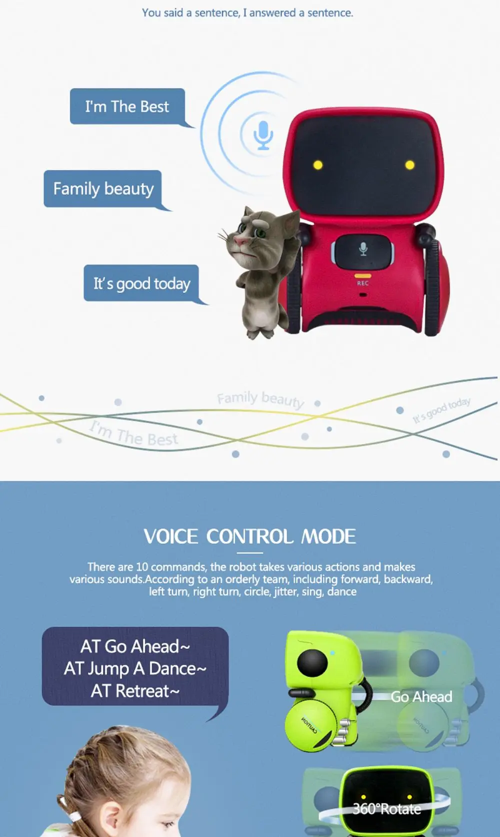 Kids’ Partner- Our toy robot has a variety of functions that can accompany children to play together.