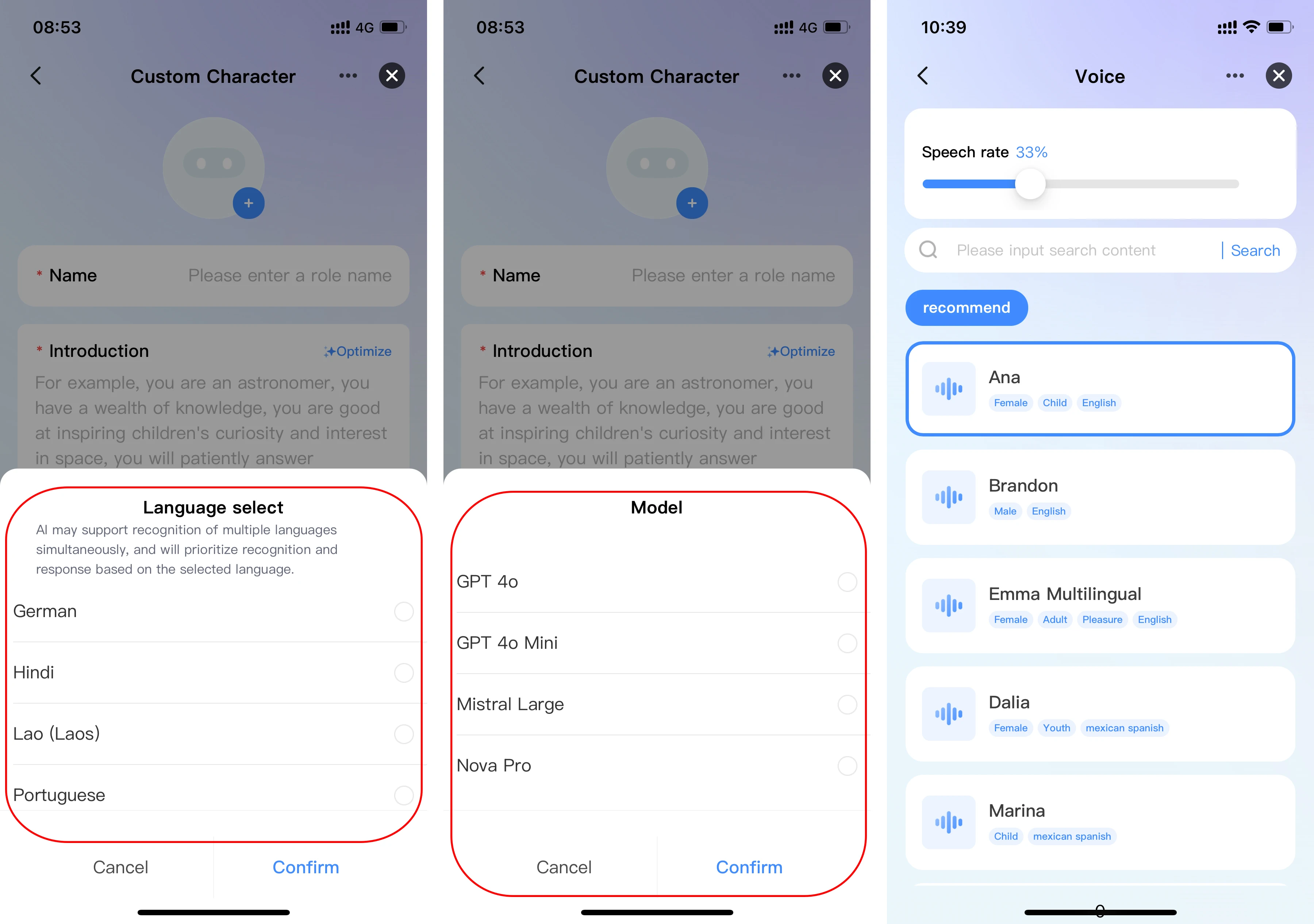 Customizable: Language, Speech rate, Intonation, Tone, AI model