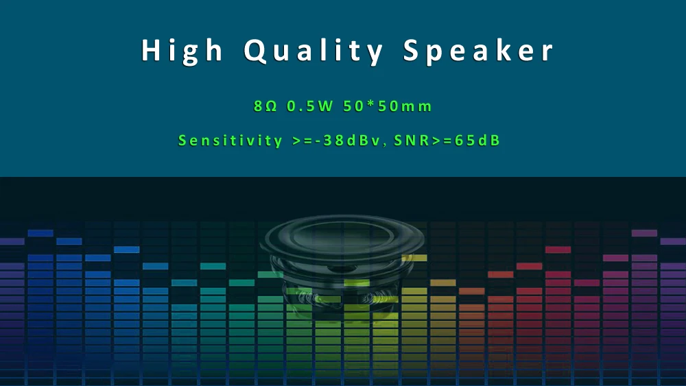 * Speaker: 8Ω 0.5W 50*50mm, Sensitivity >=-38dBv,SNR>=65dB