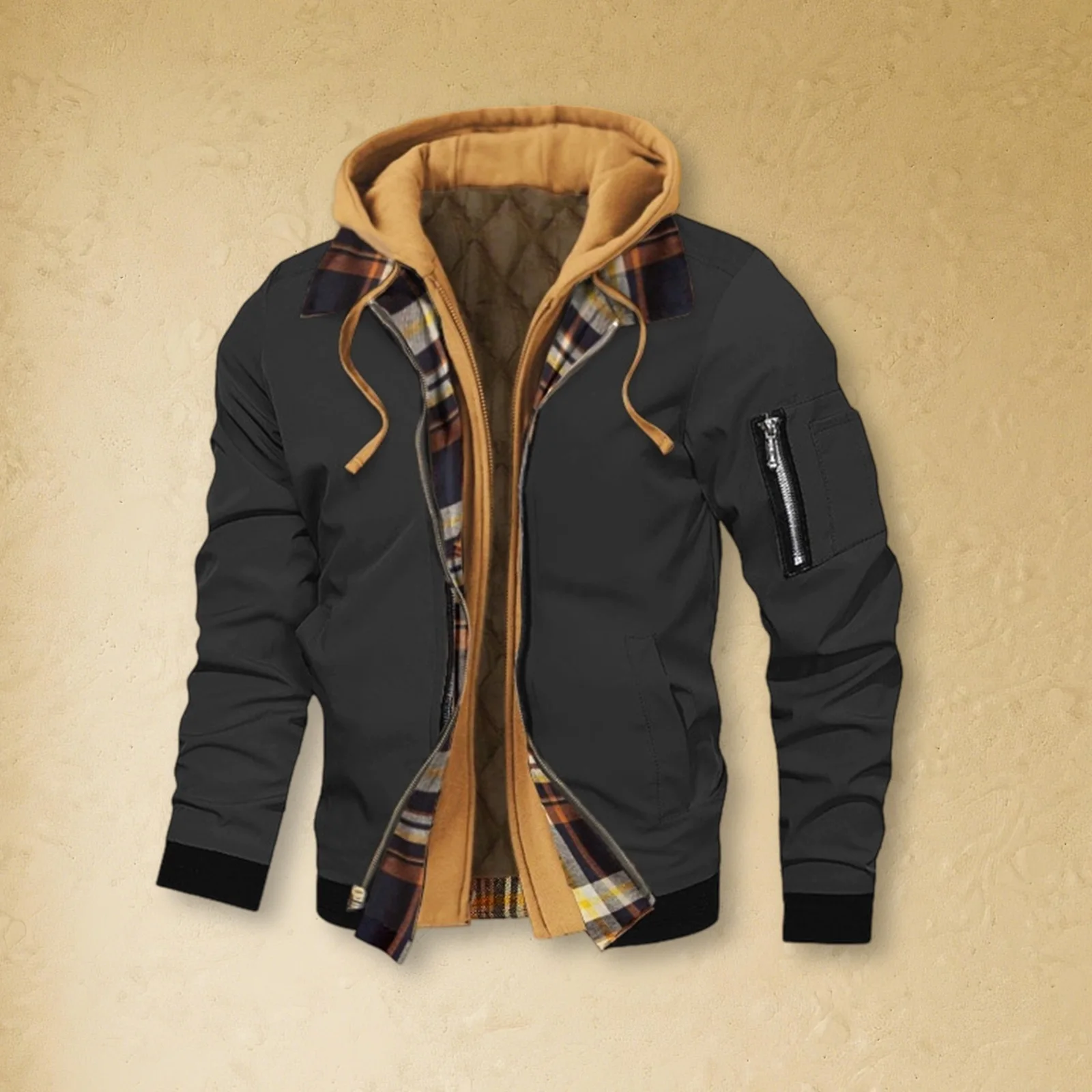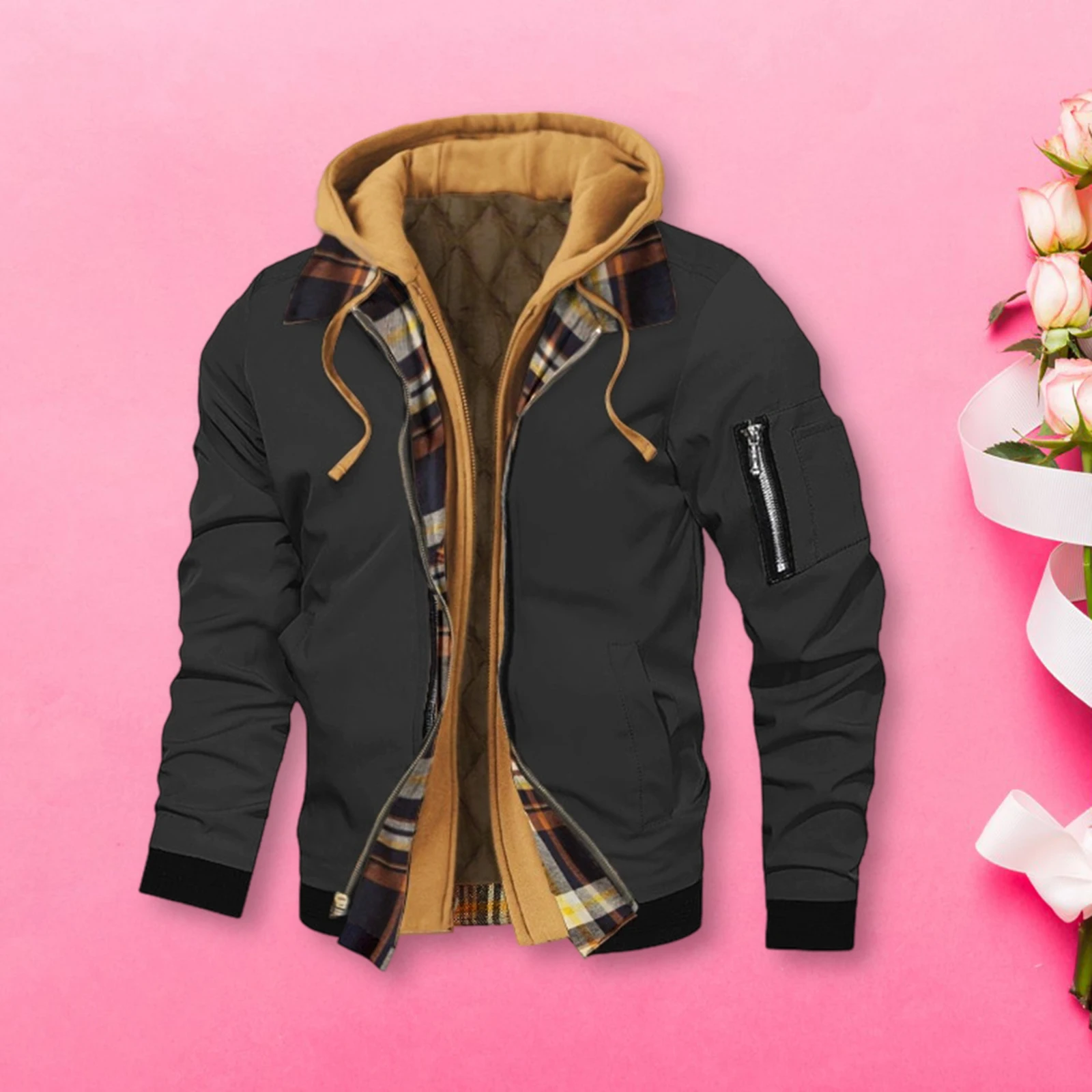 Men’s Winter Hooded Jacket Casual Fake Two Piece Design Zip Up Long Sleeve Warm Coats