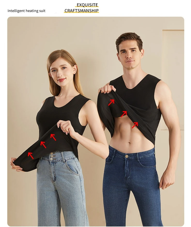 Heated Jacket Men Women Warm Seamless Vest USB Self Heating Jacket Ski Camping Hiking Heated suede Winter Clothes Washed