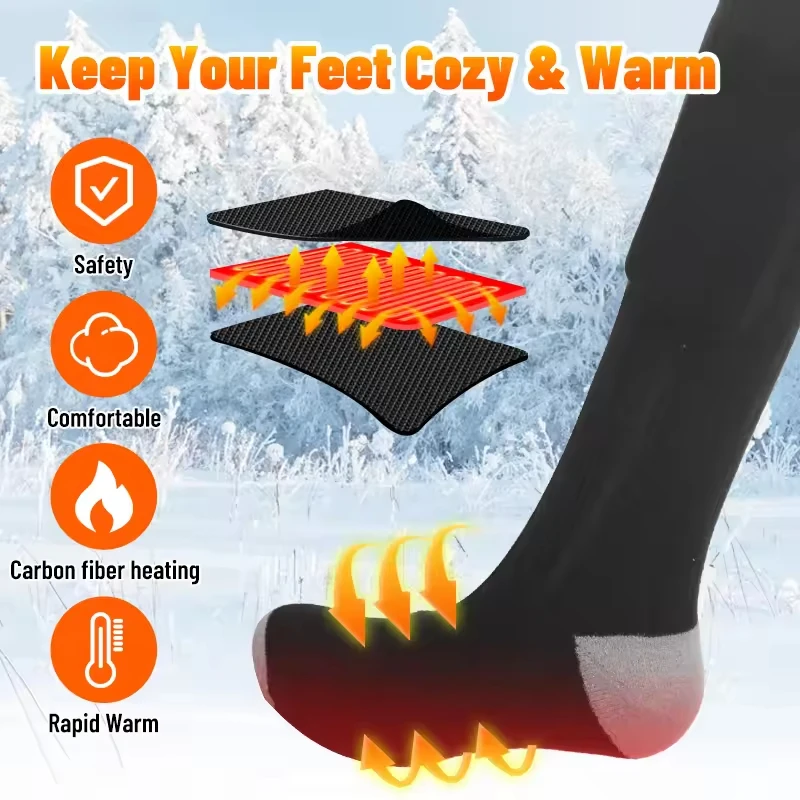 Experience ultimate warmth in freezing temperatures with our advanced heated socks! Perfect for outdoor adventures and daily winter wear, these smart temperature-regulated socks provide customized comfort for everyone. With three precise heating modes and extended battery life, cold feet will become a thing of the past!