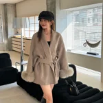 8 reviews for Elegant Lace Up Woolen Coat Women Solid Loose Lapel Furry Belt Long Sleeve Short Jacket 2025 Autumn Winter Lady Cardigan Outwear