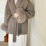 Wore this belted wool coat to a winter market and stayed cozy the entire time. The furry cuffs kept my wrists warm, while the cropped length allowed easy movement through crowds. Got two compliments on how the tie-waist flattered my figure.