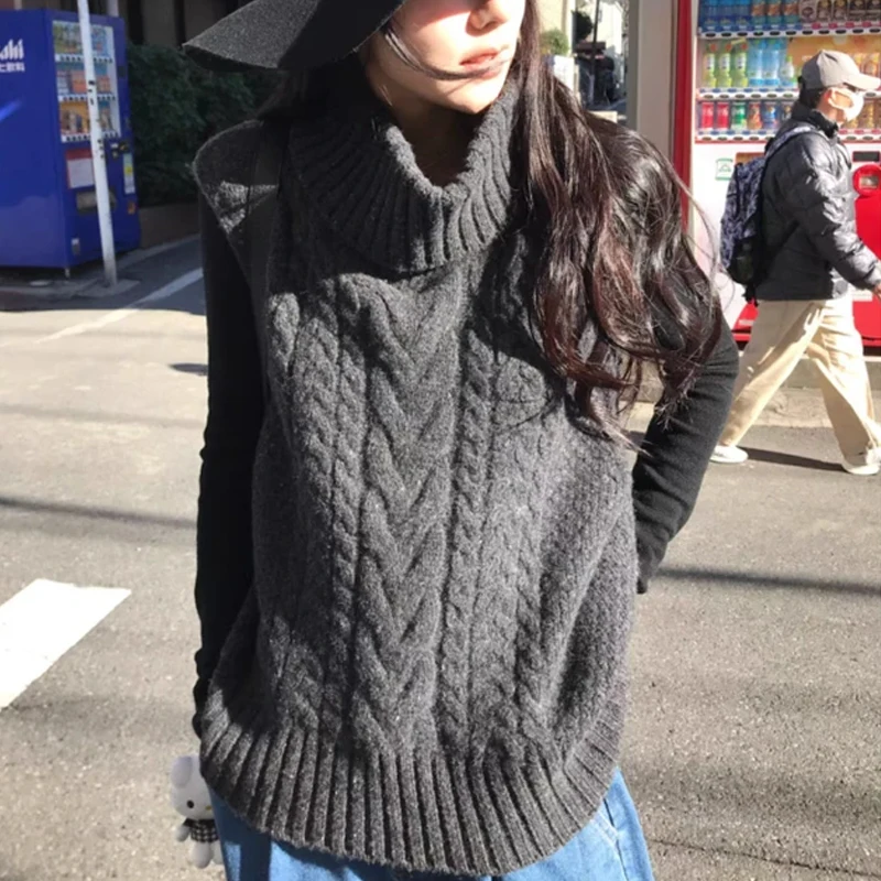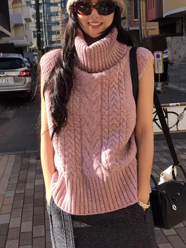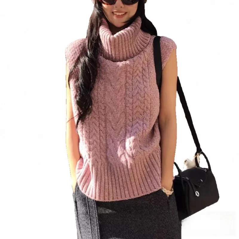 New Turtleneck Sleeveless Knitted Sweater Vest Women 2025 Autumn/Winter Casual Knitted Top Women Loose Tank Tops Loose Versatile New Turtleneck Sleeveless Knitted Sweater Vest Women 2025 Autumn/Winter Casual Knitted Top Women Loose Tank Tops Loose Versatile